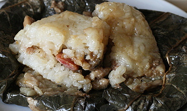 The dumpling skin is made of fried taro that is flaky and crispy. The filling is made of seasoned ground pork and mushrooms.